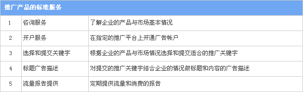 ·真誠服務:重視客戶,尊重客戶,態度熱情;·專人服務:建立一對一的專屬客服人員和溝通通道;·限時服務:半小時內處理客戶的問題;·全程服務:提供開通到持續的售后服務;·方案策劃:提供網絡營銷整體方案服務;·資訊服務:及時提供全新的網絡營銷資訊。